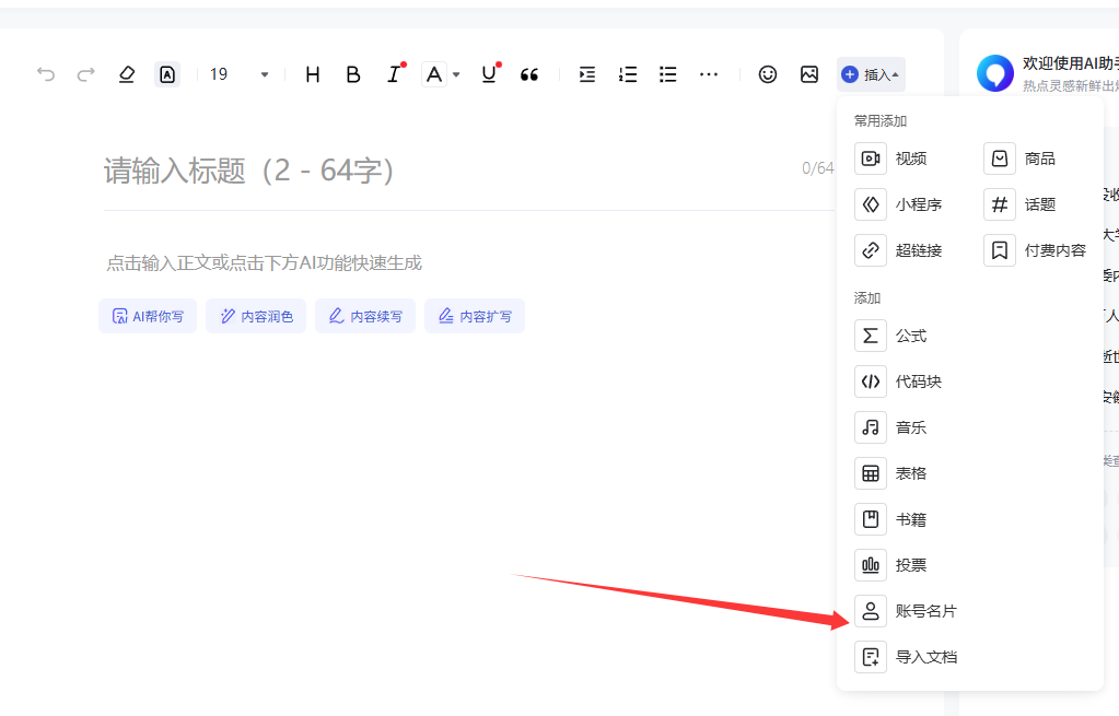 插入的流程大家可以看下,在发文章的时候直接选择账号名片就行。